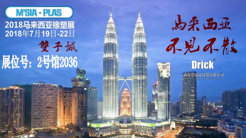 2018年馬來西亞國際塑膠展M’SIA-PLAS 2018于今日在馬來西亞吉隆坡太子世界貿易中心盛大開幕!山東德瑞克儀器有限公司為了提高自身實力,增強企業競爭力應邀前來!我們在2號館2036展位等您!本次展會由我們外貿部屈總帶隊,歡迎國內外客戶蒞臨指導!