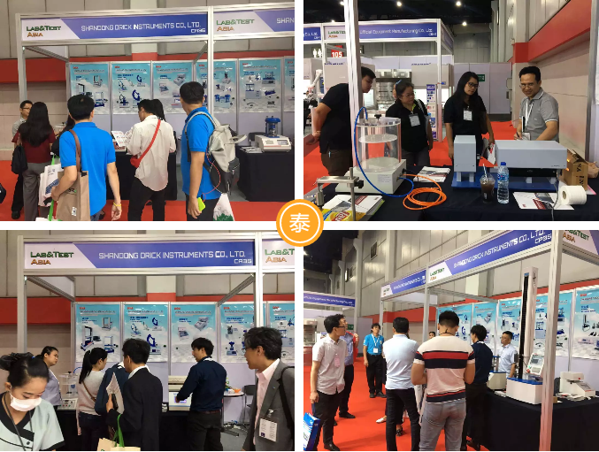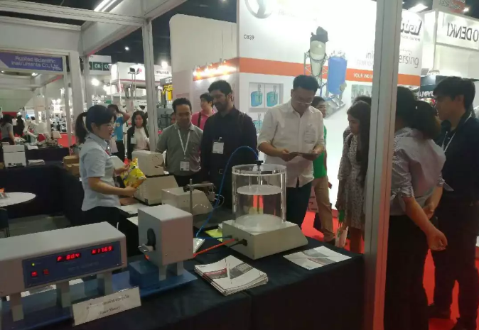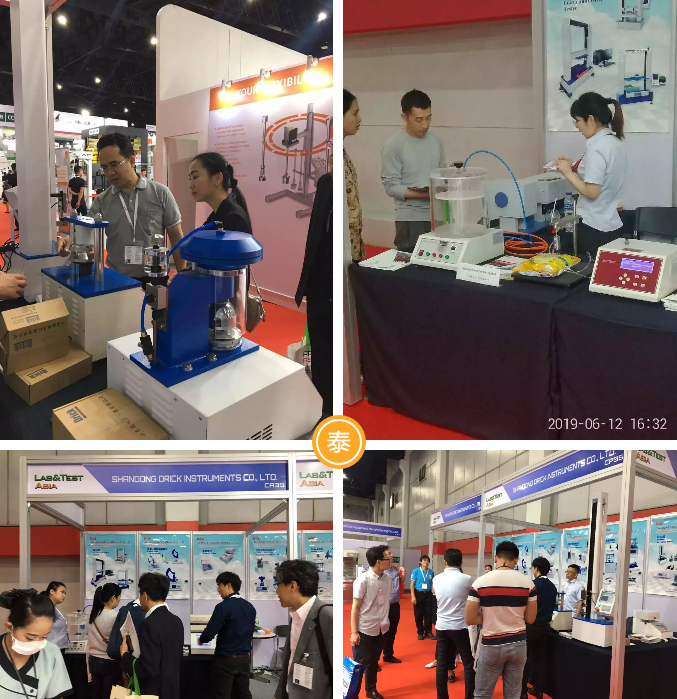 上海展我們展出的產(chǎn)品有:初粘性測試儀、持粘性測試儀、臥式電子拉力試驗(yàn)機(jī)、電子拉力試驗(yàn)機(jī)、密封試驗(yàn)儀、雙五點(diǎn)熱封儀、摩擦系數(shù)、 薄膜測厚儀、氣相色譜儀、恒溫恒濕箱、透光率霧度測試儀、薄膜熱收縮性能測試儀 、薄膜擺錘沖擊試驗(yàn)儀、電子撕裂度測試儀、落鏢沖擊試驗(yàn)儀;泰國曼谷展我們攜帶的產(chǎn)品有:拉力機(jī),熱封儀,泄漏與密封強(qiáng)度測試儀,壓縮試驗(yàn)儀 耐破度儀,柔軟度儀。以上產(chǎn)品的展出,收獲了許多客戶的青睞和關(guān)注,更有幾批客戶現(xiàn)場簽下訂單。